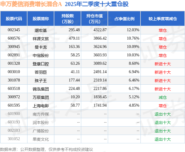 根据2025基金半年报公募基金重仓股数据,重仓该股的公募基金共5家,其中持有数量最多的公募基金为申万菱信基金的申万菱信消费增长混合A。申万菱信消费增长混合A目前规模为1.63亿元,最新净值1.569(9月17日),较上一交易日上涨1.1%,近一年上涨78.5%。该公募基金现任基金经理为刘含。刘含在任的基金产品包括:申万菱信乐融一年持有混合A,管理时间为2023年11月29日至今,期间收益率为64.22%。