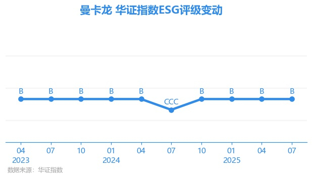 日前,华证指数公布了新一期(2025年7月31日)的ESG评级结果,曼卡龙(300945.SZ)获得B评级(华证指数评级为C起至AAA九档,C为最低档,AAA为其最高一级评级/AA为其第二档),上一期(2025年4月30日)ESG评级为B。本期ESG评级在116家纺织品、服装与奢侈品行业A股上市公司中排名第51(上一期排名第51)。
