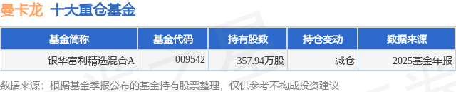 根据2025基金年报公募基金重仓股数据,重仓该股的公募基金共1家,其中持有数量最多的公募基金为银华基金的银华富利精选混合A。银华富利精选混合A目前规模为13.44亿元,最新净值0.6115(2月13日),较上一交易日下跌1.48%,近一年上涨2.22%。该公募基金现任基金经理为焦巍 秦锋。焦巍在任的基金产品包括:银华富裕主题混合A,管理时间为2018年12月27日至今,期间收益率为102.36%;银华富饶精选三年持有期混合,管理时间为2021年5月28日至今,期间收益率为-30.79%;银华富久食品饮料精选混合(LOF)A,管理时间为2021年9月3日至今,期间收益率为-43.54%。秦锋在任的基金产品包括:银华中证全指医药卫生,管理时间为2017年9月28日至今,期间收益率为30.89%;