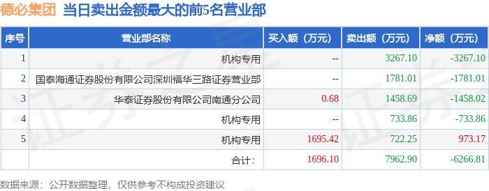 12月19日德必集团(300947)龙虎榜数据:机构净卖出1634.66万元