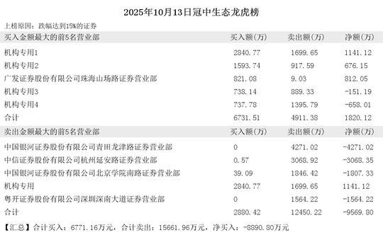 买入前5席为:机构专用1、机构专用2、广发证券股份有限公司珠海山场路证券营业部、机构专用3、机构专用4。共计买入:6731.51万元,共计卖出:4911.38万元。