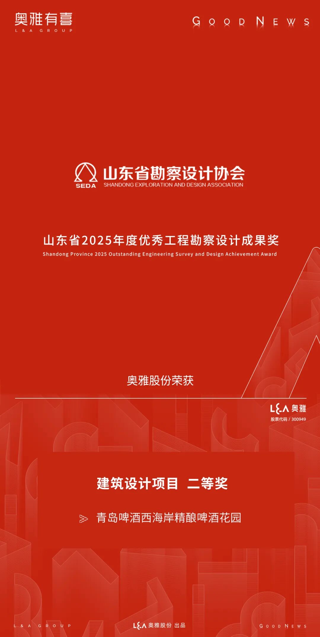 近日,由山东省勘察设计协会与山东省建设建材工会联合主办的“2025年度勘察设计行业优秀工程勘察设计成果”竞赛评选结果发布。奥雅股份(股票代码:300949)作品:青岛啤酒西海岸精酿啤酒花园,凭借对城市发展脉络、城市生活方式的准确把握,获得建筑设计项目二等奖。