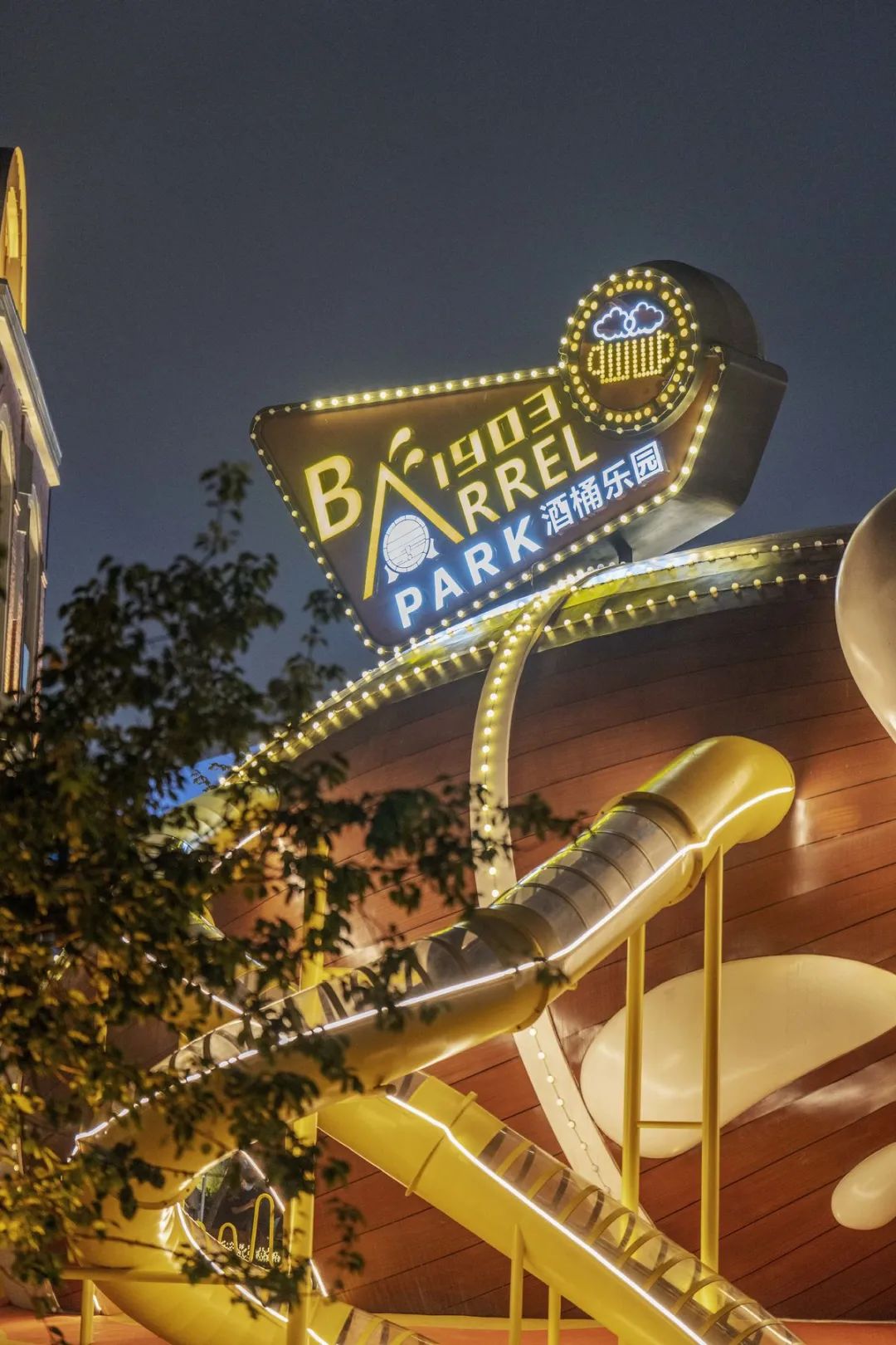 ◤以倾洒的酒液为设计灵感,将啤酒桶作为儿童游具的主体
