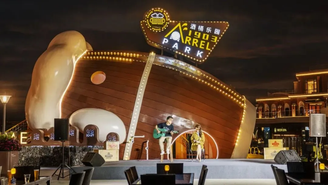 青岛啤酒 · 时光海岸精酿啤酒花园位于青岛市黄岛区金沙滩啤酒城内,距离金沙滩仅 1 公里,有着清澈纯净的海水资源及天然沙滩资源。作为青岛国际啤酒节主会场的配套用地,这里是青岛打造未来文旅发展的重点板块。