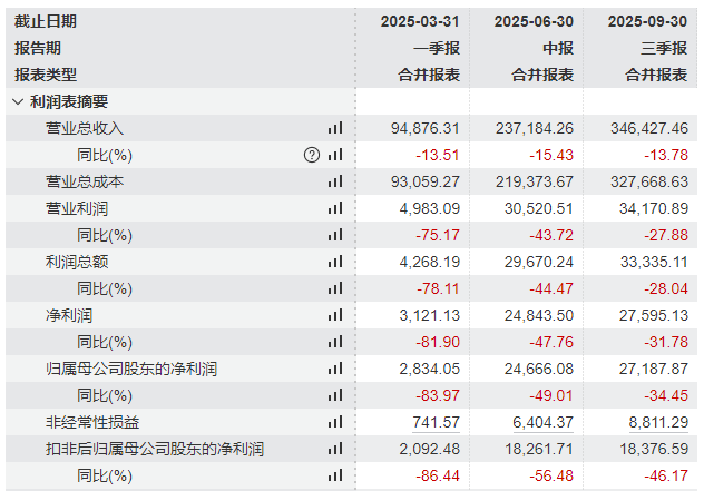 第一季度,公司营收9.49亿元,同比下降13.51%,归母净利润2834.05万元,同比下滑83.97%;上半年营收23.72亿元,同比下降15.43%,归母净利润2.47亿元,同比下滑49.01%。