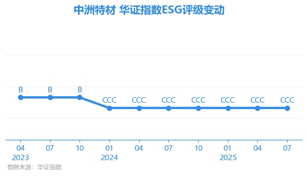 日前,华证指数公布了新一期(2025年7月31日)的ESG评级结果,中洲特材(300963.SZ)获得CCC评级(华证指数评级为C起至AAA九档,C为最低档,AAA为其最高一级评级/AA为其第二档),上一期(2025年4月30日)ESG评级为CCC。本期ESG评级在196家金属与采矿行业A股上市公司中排名第145(上一期排名第160)。