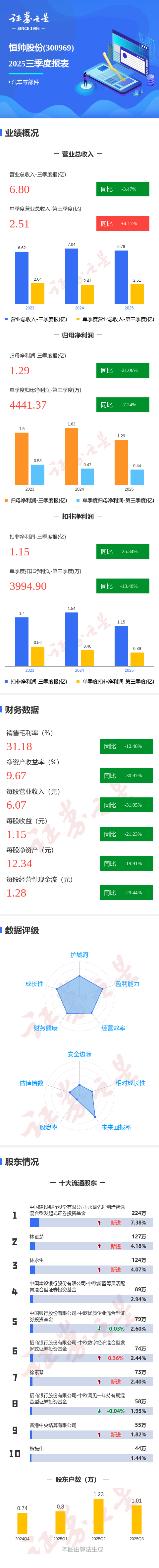 图解恒帅股份三季报:第三季度单季净利润同比下降7.25%