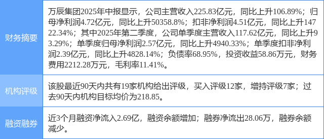 今日万辰集团(300972)涨10.64%,收盘报192.0元。