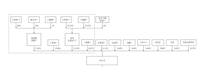 截止递表,福建农开发由王泽宁、王丽卿及陈文柱持有,漳州金万辰由王泽宁、王丽卿合计持有91%。人物关系上,王丽卿是王泽宁的姑姑,陈文柱是王丽卿的表弟。