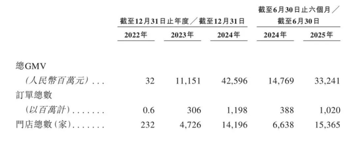 伴随门店数量的增长,万辰集团的订单数出现暴增。2022年-2024年,万辰集团订单数量分别为60万单、3.06亿单、11.98亿单,而今年上半年,万辰集团订单数量已经达到10.2亿单。