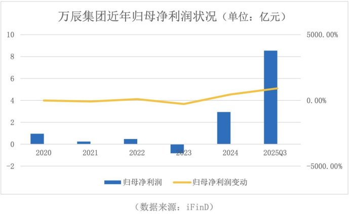 2025年前三季度,万辰集团营业收入高出2024年整年营收42.33亿元;归母净利润更是超出2024年整年近2倍。