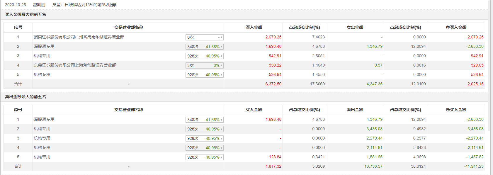 10月26日,立高食品今日跌15.68%,全天换手率达9.34%,振幅达14.39%。龙虎榜数据显示,营业部席位合计净卖出7262.8万元。其中,机构买入1593.38万元,卖出9411.78万元,合计净卖出7818.4万元。此外,深股通专用、东莞证券上海芳甸路证券营业部分别卖出4346.79万元、5651元;招商证券广州番禺南华路证券营业部、深股通专用分别买入2679.25万元、1693.48万元。