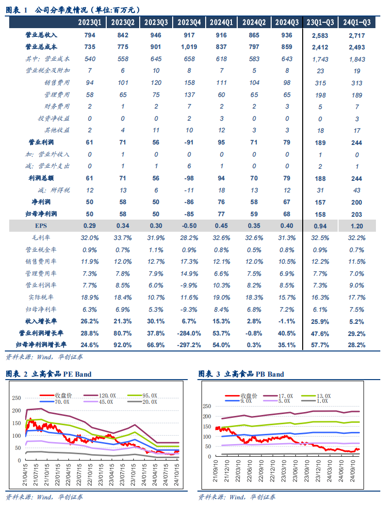 控费成效显著,盈利持续改善,维持“强推”评级。尽管短期需求仍有压力,但公司务实布局稀奶油、大B等增量业务,且持续优化下经营内功愈发夯实,考虑到饼店出清、格局恶化和管理变更等扰动已陆续反应,来年若政策推动下需求有所回暖,公司有望恢复较大弹性表现。考虑公司不冒进追求过高目标,根据客观行业环境,股权激励目标或不做硬性考核,故我们下调24-26年收入预测,同时维持关于24-26年盈利能力(净利率)预测,最终24-26年EPS预测为1.61/1.98/2.39元(原预测为1.61/2.11/2.56元),对应PE为22/18/15倍,参考公司历史估值水平,给予25年25倍PE,对应一年目标市值84亿/目标价49.5元,维持“强推”评级。