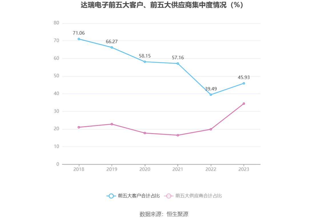 数据统计显示,达瑞电子近三年营业总收入复合增长率为13.36%,在消费电子零部件及组装行业已披露2023年数据的45家公司中排名第15。近三年净利润复合年增长率为-30.00%,排名33/45。