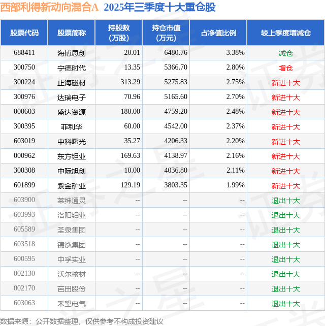 根据2025基金Q3季报公募基金重仓股数据,重仓该股的公募基金共14家,其中持有数量最多的公募基金为西部利得基金的西部利得新动向混合A。西部利得新动向混合A目前规模为8.37亿元,最新净值1.616(12月31日),较上一交易日下跌0.86%,近一年上涨47.45%。该公募基金现任基金经理为董伟炜。董伟炜在任的基金产品包括:西部利得祥运混合A,管理时间为2024年8月14日至今,期间收益率为33.53%;西部利得均衡优选混合A,管理时间为2025年1月24日至今,期间收益率为53.88%;西部利得汇逸债券A,管理时间为2025年1月27日至今,期间收益率为5.67%。