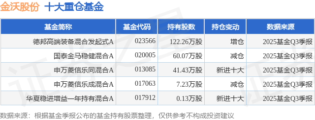 重仓金沃股份的公募基金请见下表: