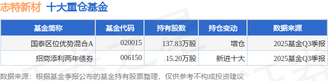 重仓志特新材的公募基金请见下表: