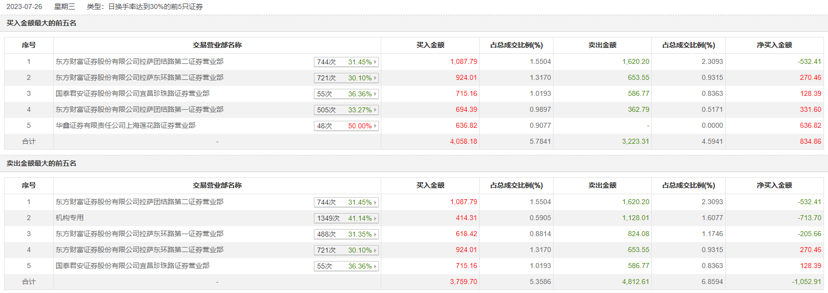 具体来看,机构买入414.31万元,卖出1128.01万元,合计净卖出713.7万元。此外,东方财富证券拉萨团结路第二证券营业部、东方财富证券拉萨东环路第二证券营业部分别买入1087.79万元、924.01万元;东方财富证券拉萨团结路第二证券营业部、东方财富证券拉萨东环路第一证券营业部分别卖出1620.20万元、824.08万元。
