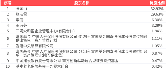 公司股东户数为1.31万户,前十大股东持股数量为1.32亿股,占总股本比例为77.91%,前十大股东持股情况如下: