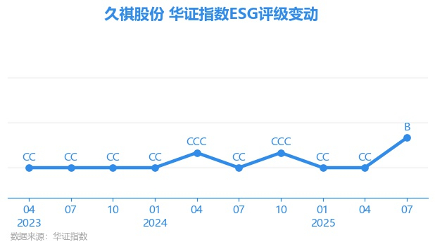 日前,华证指数公布了新一期(2025年7月31日)的ESG评级结果,久祺股份(300994.SZ)获得B评级(华证指数评级为C起至AAA九档,C为最低档,AAA为其最高一级评级/AA为其第二档),上一期(2025年4月30日)ESG评级为CC。本期ESG评级在30家休闲设备与用品行业A股上市公司中排名第16(上一期排名第21)。