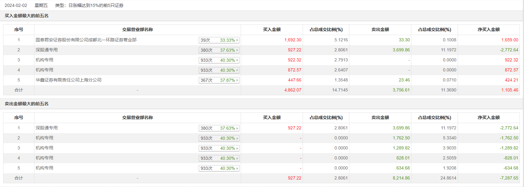 2月2日,欢乐家今日涨15.55%,全天换手率达28.77%,振幅达17.96%。龙虎榜数据显示,营业部席位合计净卖出3409.55万元。其中,机构买入1794.89万元,卖出4515.0万元,合计净卖出2720.11万元。此外,国泰君安证券成都北一环路证券营业部、深股通专用分别买入1692.30万元、927.22万元;深股通专用、国泰君安证券成都北一环路证券营业部分别卖出3699.86万元、33.30万元。