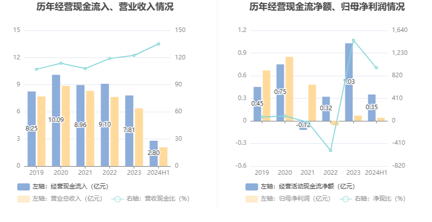 2024年上半年,公司营业收入现金比为135.10%,净现比为963.31%。