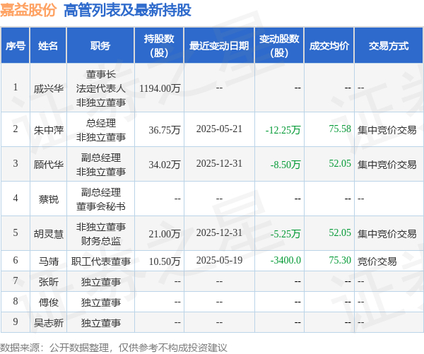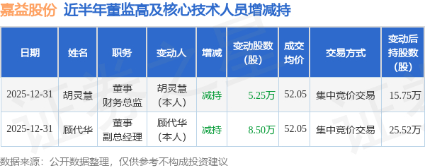 嘉益股份:12月31日高管顾代华、胡灵慧减持股份合计13.75万股