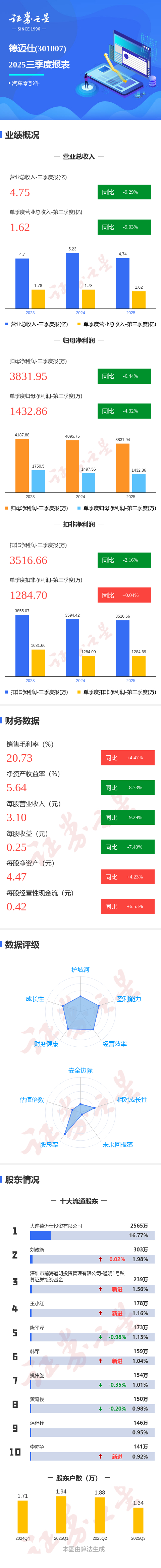 图解德迈仕三季报:第三季度单季净利润同比下降4.32%