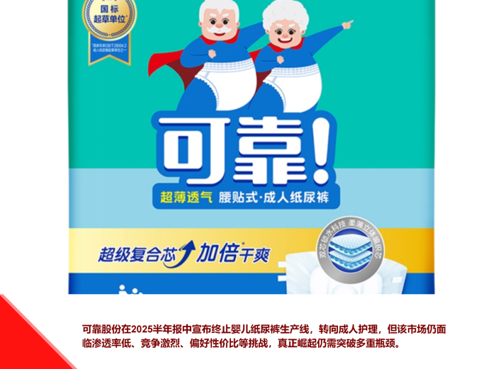 可靠股份在2025半年报中宣布终止婴儿纸尿裤生产线,转向成人护理,但该市场仍面临渗透率低、竞争激烈、偏好性价比等挑战,真正崛起仍需突破多重瓶颈。