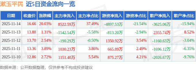 11月14日的资金流向数据方面,主力资金净流入8522.59万元,占总成交额37.49%,游资资金净流出4897.53万元,占总成交额21.54%,散户资金净流出3625.06万元,占总成交额15.94%。