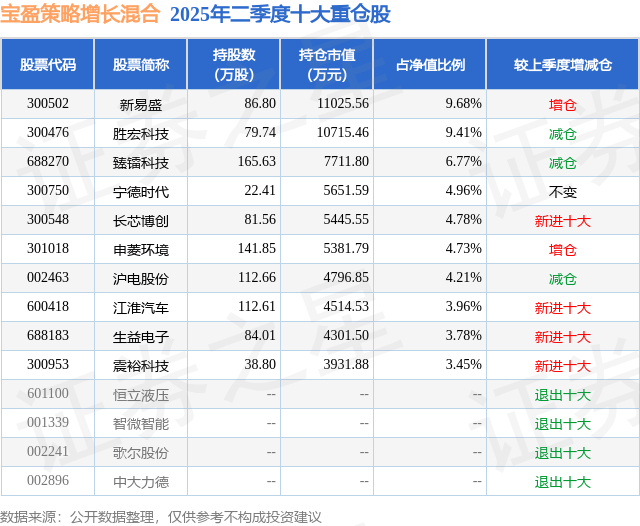 根据2025基金半年报公募基金重仓股数据,重仓该股的公募基金共6家,其中持有数量最多的公募基金为宝盈基金的宝盈策略增长混合。宝盈策略增长混合目前规模为11.39亿元,最新净值1.6279(10月16日),较上一交易日下跌0.49%,近一年上涨103.97%。该公募基金现任基金经理为容志能。容志能在任的基金产品包括:宝盈转型动力混合A,管理时间为2023年3月17日至今,期间收益率为146.97%;宝盈国家安全沪港深股票A,管理时间为2023年3月17日至今,期间收益率为43.62%;宝盈创新驱动股票A,管理时间为2023年4月15日至今,期间收益率为70.3%;宝盈科技30混合,管理时间为2024年12月24日至今,期间收益率为78.86%。