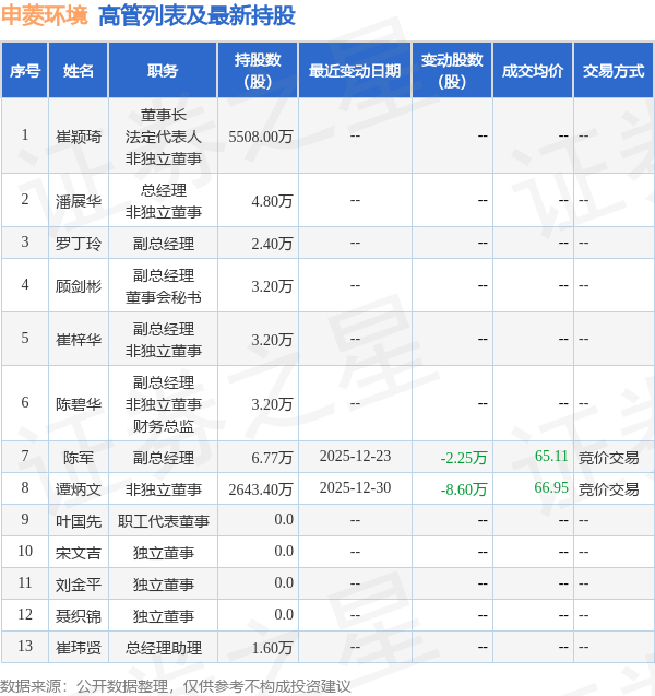 申菱环境近半年内的董监高及核心技术人员增减持详情如下: