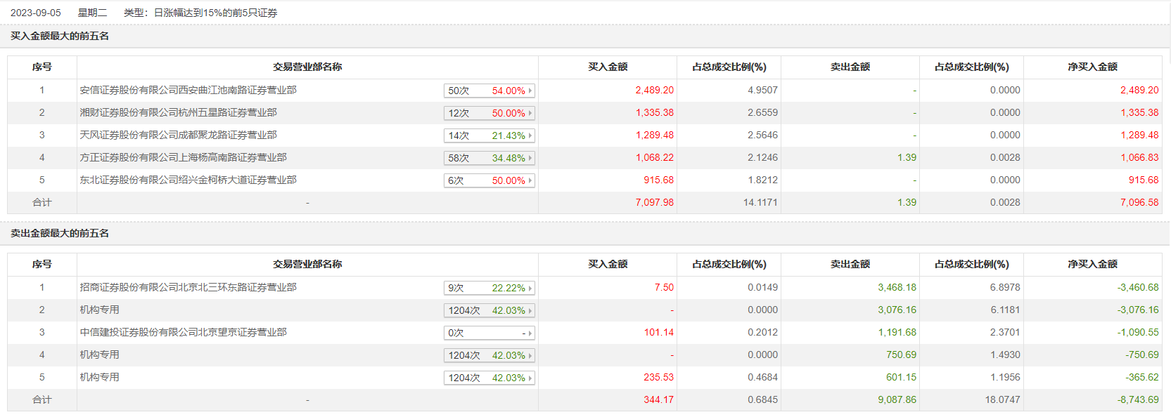 具体来看,机构买入235.53万元,卖出4428.0万元,合计净卖出4192.47万元。此外,安信证券西安曲江池南路证券营业部、湘财证券杭州五星路证券营业部分别买入2489.20万元、1335.38万元;