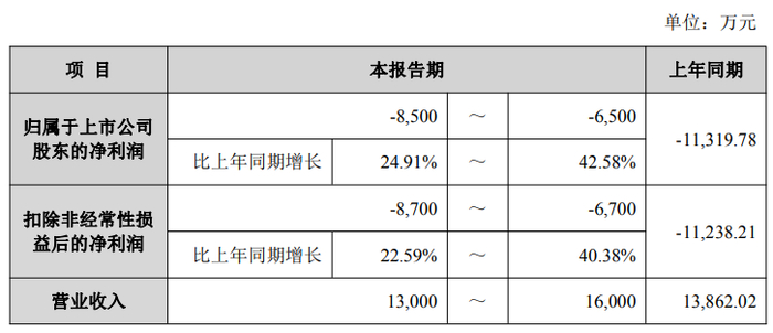 1月30日,霍普股份(301024)发布公告,预计2025年度归母净利润约-8500万元至-6500万元,较上年同期亏损1.13亿元,增长幅度为24.91%至42.58%。