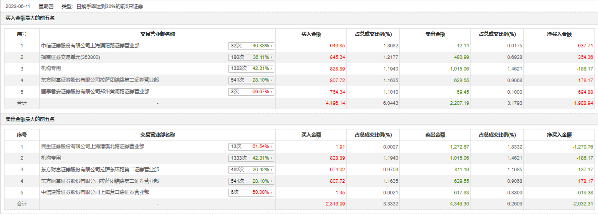 具体来看,机构买入828.89万元,卖出1015.06万元,合计净卖出186.17万元。此外,知名游资现身龙虎榜,孙哥(中信证券上海溧阳路证券营业部)、招商证券交易单元(353800)分别买入949.85万元、845.34万元;民生证券上海漕溪北路证券营业部、东方财富证券拉萨东环路第二证券营业部分别卖出1272.67万元、811.19万元。