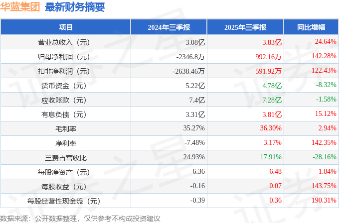 华蓝集团(301027)2025年三季报简析:营收净利润同比双双增长,盈利能力上升