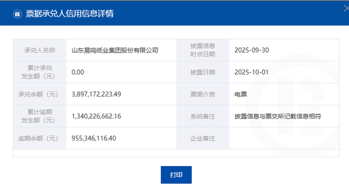 ST晨鸣上市主体截至9月末的票据逾期情况,来源:上海票据交易所官网