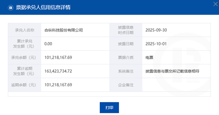 ST合纵上市主体截至9月末的票据逾期情况,来源:上海票据交易所官网