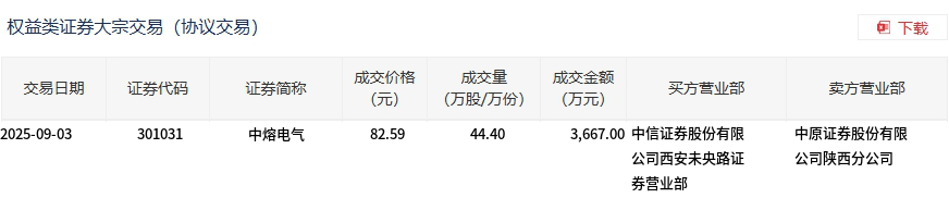 中熔电气今日大宗交易折价成交44.4万股,成交额3667万元