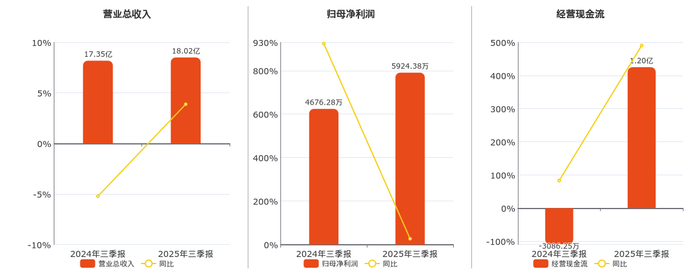 公司营业总收入为18.02亿元。归母净利润为5924.38万元。经营活动现金净流入为1.20亿元。