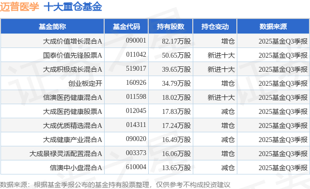 重仓迈普医学的前十大公募基金请见下表: