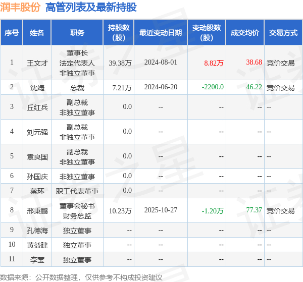 润丰股份的高管列表及最新持股情况如下: