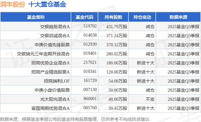 重仓润丰股份的前十大公募基金请见下表: