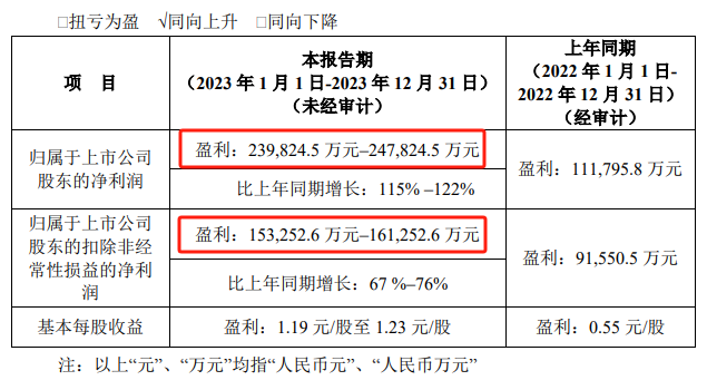 产品摘要,数据来源:中集车辆官网中集车辆发布的业绩预告显示,其预计2023年归母净利润为23.98亿元至24.78亿元,同比增长115%至122%;其扣非后归母净利润为15.33亿元至16.13亿元,同比增长67%至76%。