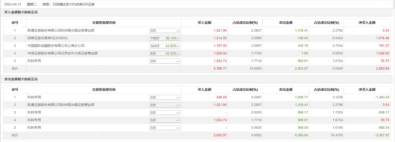 具体来看,机构买入1371.03万元,卖出4742.43万元,合计净卖出3371.41万元。此外,财通证券杭州丽水路证券营业部、招商证券交易单元(353800)分别买入1321.95万元、1214.50万元;财通证券杭州丽水路证券营业部、中国国际金融上海分公司分别卖出1318.41万元、435.76万元。