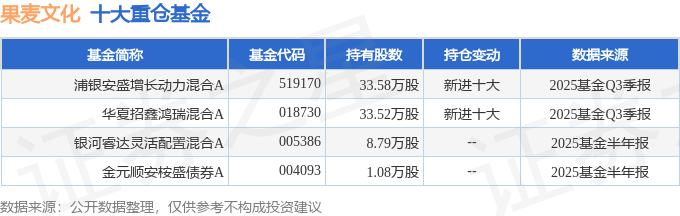持有果麦文化最多的基金为浦银安盛增长动力混合A,目前规模为6.46亿元,最新净值0.9415(10月28日),较上一交易日上涨0.48%,近一年上涨11.09%。该基金现任基金经理为宋施怡。