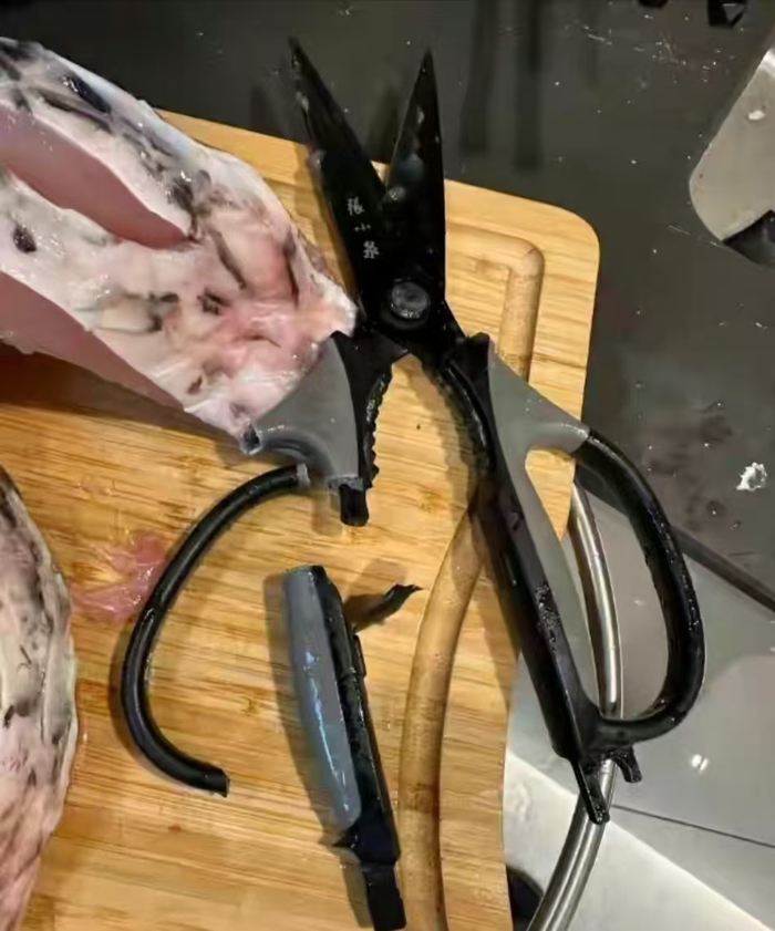 剪鲜鱼时剪刀手柄突然断裂遭吐槽,张小泉客服回应
