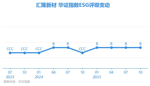 日前,华证指数公布了新一期(2025年10月31日)的ESG评级结果,汇隆新材(301057.SZ)获得B评级(华证指数评级为C起至AAA九档,C为最低档,AAA为其最高一级评级/AA为其第二档),上一期(2025年7月31日)ESG评级为B。本期ESG评级在494家化学制品行业A股上市公司中排名第196(上一期排名第175)。