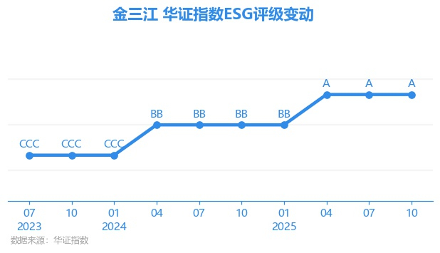 日前,华证指数公布了新一期(2025年10月31日)的ESG评级结果,金三江(301059.SZ)获得A评级(华证指数评级为C起至AAA九档,C为最低档,AAA为其最高一级评级/AA为其第二档),上一期(2025年7月31日)ESG评级为A。本期ESG评级在494家化学制品行业A股上市公司中排名第50(上一期排名第66)。
