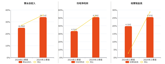 公司营业总收入为25.11亿元。归母净利润为6.58亿元。经营活动现金净流入为5.57亿元。